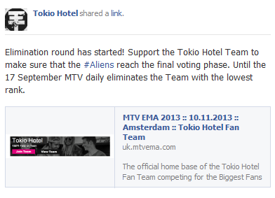 From 17 September 2013 until 8 November 2013, each point earned by users on Fan Teams is equivalent to one vote for that artist for the Biggest Fans award.